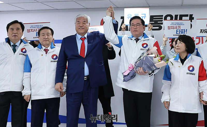 유 전 본부장은 이날 "껍데기밖에 안 남은 이재명이 여러분이 주신 표로 방탄조끼를 만들어 입는 꼴은 더이상 못 보겠어서 나왔다"며 출마 이유를 밝혔다. (사진=자유통일당)