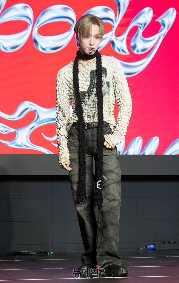 보이그룹 에이머스(AIMERS) 우영이 15일 오후 서울 마포구 무신사 개러지에서 열린 두 번째 싱글앨범 '썸바디(SOMEBODY)' 쇼케이스에서 포즈를 취하고 있다.