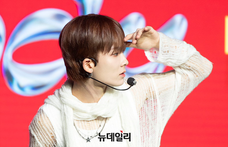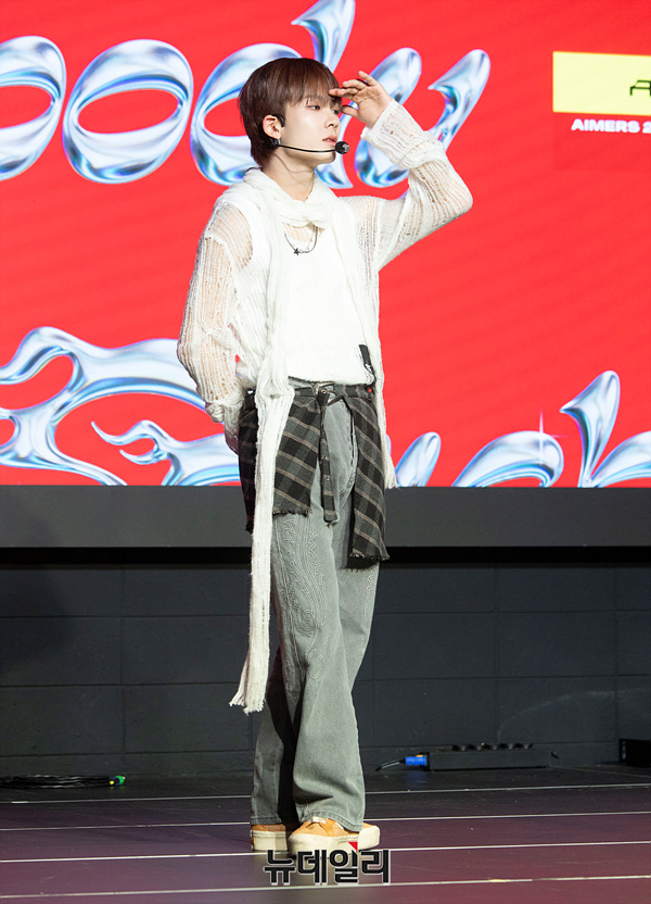 보이그룹 에이머스(AIMERS) 승환이 15일 오후 서울 마포구 무신사 개러지에서 열린 두 번째 싱글앨범 '썸바디(SOMEBODY)' 쇼케이스에서 포즈를 취하고 있다.