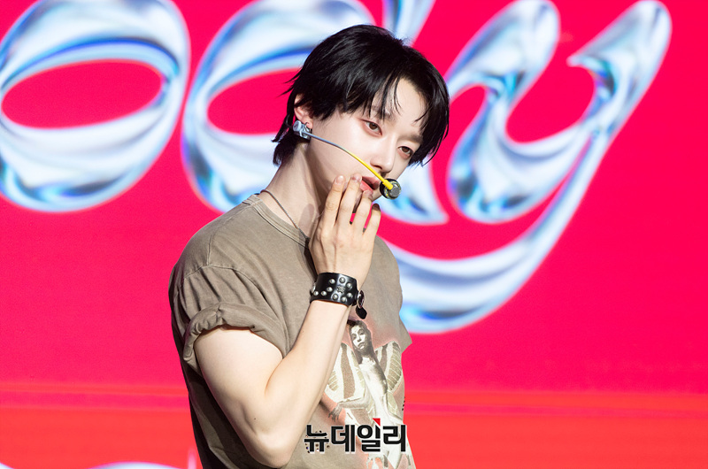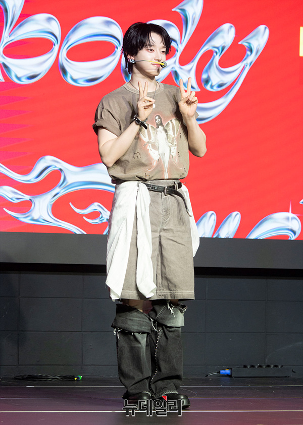 보이그룹 에이머스(AIMERS) 은준이 15일 오후 서울 마포구 무신사 개러지에서 열린 두 번째 싱글앨범 '썸바디(SOMEBODY)' 쇼케이스에서 포즈를 취하고 있다.