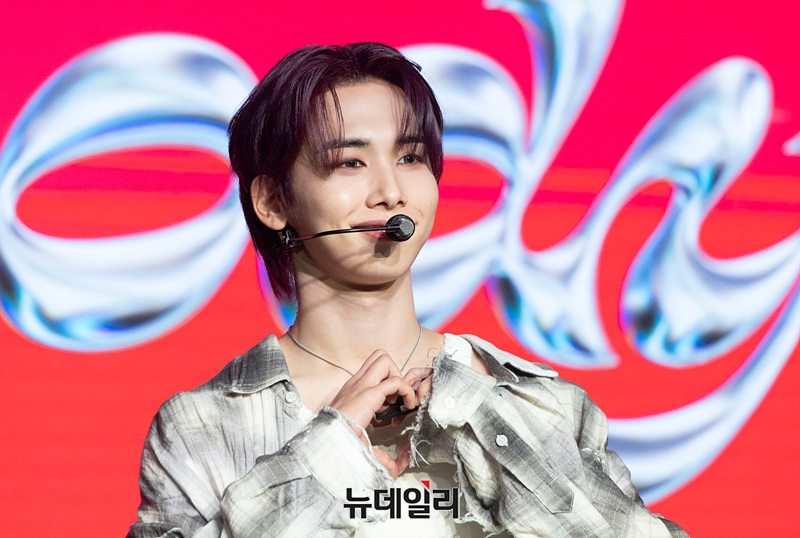보이그룹 에이머스(AIMERS) 승현이 15일 오후 서울 마포구 무신사 개러지에서 열린 두 번째 싱글앨범 '썸바디(SOMEBODY)' 쇼케이스에서 포즈를 취하고 있다.