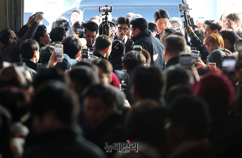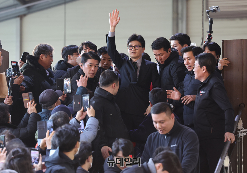 한동훈 국민의힘 비상대책위원장이 16일 오후 경기 의정부시 제일시장을 방문하기 위해 차량에서 내리고 있다. (경기 의정부=정상윤 기자)