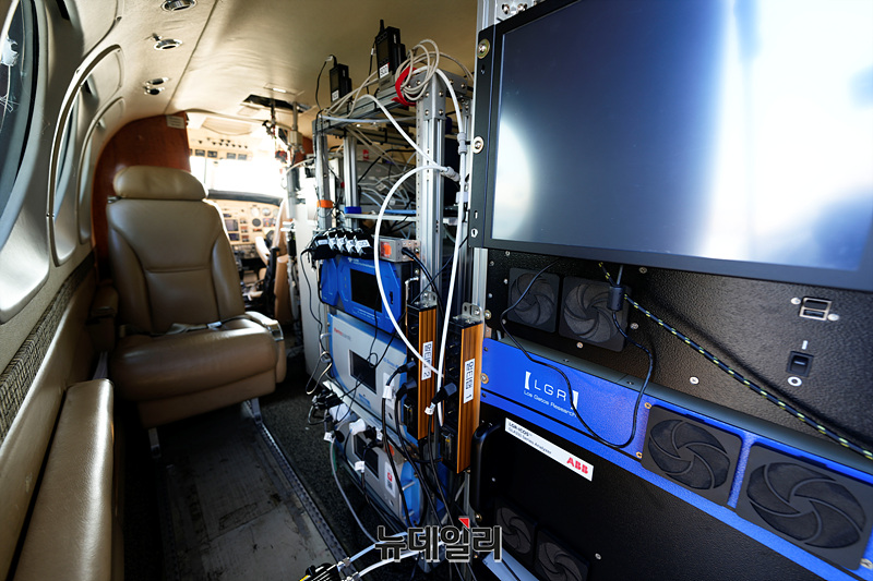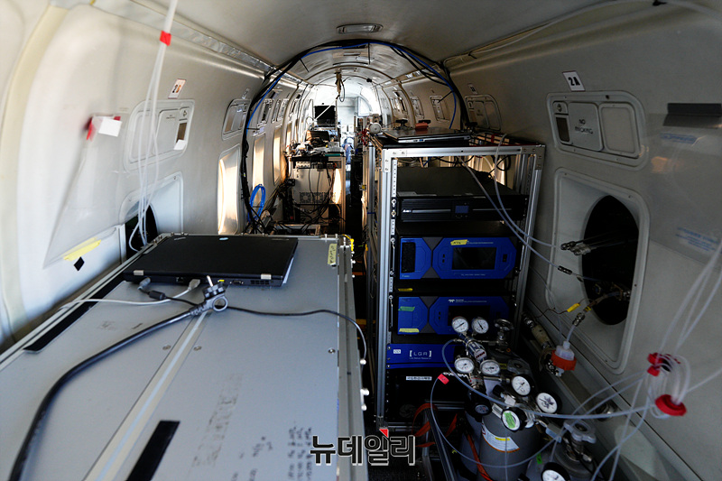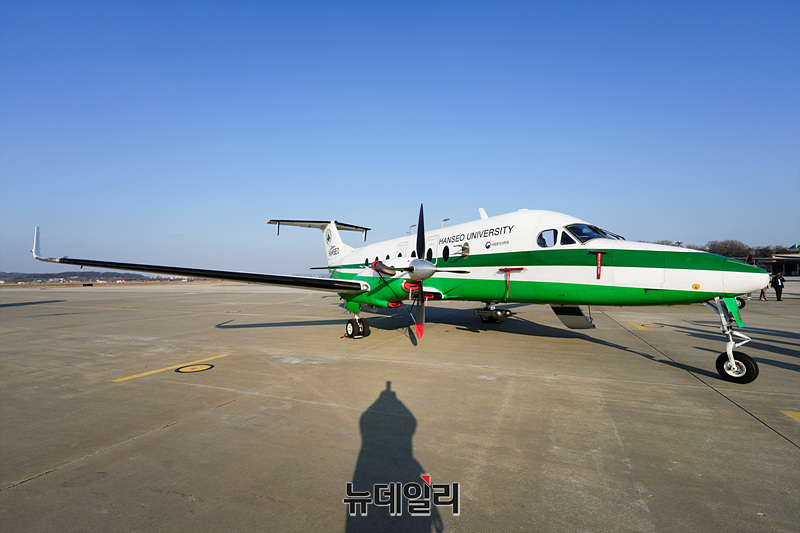 한서대학교가 16일 오후 경기 평택시 오산공군기지에서 열린 아시아 공동 대기질 조사(ASIA-AQ ) 미디어데이에서 연구용 항공기를 공개하고 있다.아시아 대기질 공동조사(ASIA-AQ)는 세계최초 정지궤도 환경위성인 '천리안위성2B'의 아시아 관측 자료 검증을 위해 진행된다. 미항공우주국은 연구용 항공기 DC-8과 걸프스트림 항공기를 투입하고 우리나라는 항공기 4대, 환경 위성, 지상관측소 4개소, 원격관측소 12개소, 대기질 모델링등을 동시에 활용한다.2016년 제1차 대기질 국제 공동 조사(KORUS-AQ) 이후 두번째로 진행되는 이번 조사는 국립환경과학원과 미항공우주국, 아시아 국가들(필리핀, 말레이시아, 태국)의 정부 및 연구기관, 학회, 학계 전문가 등 약 45개 팀과 500여명이 참가한다.한국에서는 26일까지 원격장비와 항공기 등을 활용해 겨울철 미세먼지 발생원인 규명, 위성 자료 검증 추진, 국내 배출 가스상 물질의 미세먼지 변환 과정, 국외 가스상 물질국내 유입 후 미세먼지 전환, 미세먼지 상태로의 유입 여부 등을 조사할 예정이다. (경기 평택=서성진 기자)