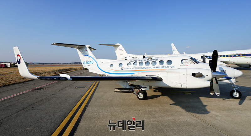 기상과학원이 16일 오후 경기 평택시 오산공군기지에서 열린 아시아 공동 대기질 조사(ASIA-AQ ) 미디어데이에서 연구용 항공기를 공개하고 있다.아시아 대기질 공동조사(ASIA-AQ)는 세계최초 정지궤도 환경위성인 '천리안위성2B'의 아시아 관측 자료 검증을 위해 진행된다. 미항공우주국은 연구용 항공기 DC-8과 걸프스트림 항공기를 투입하고 우리나라는 항공기 4대, 환경 위성, 지상관측소 4개소, 원격관측소 12개소, 대기질 모델링등을 동시에 활용한다.2016년 제1차 대기질 국제 공동 조사(KORUS-AQ) 이후 두번째로 진행되는 이번 조사는 국립환경과학원과 미항공우주국, 아시아 국가들(필리핀, 말레이시아, 태국)의 정부 및 연구기관, 학회, 학계 전문가 등 약 45개 팀과 500여명이 참가한다.한국에서는 26일까지 원격장비와 항공기 등을 활용해 겨울철 미세먼지 발생원인 규명, 위성 자료 검증 추진, 국내 배출 가스상 물질의 미세먼지 변환 과정, 국외 가스상 물질국내 유입 후 미세먼지 전환, 미세먼지 상태로의 유입 여부 등을 조사할 예정이다. (경기 평택=서성진 기자)
