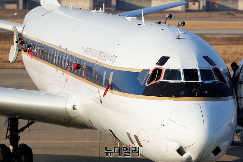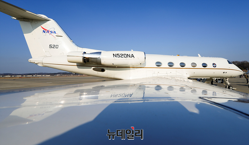미국항공우주국(NASA)이 16일 오후 경기 평택시 오산공군기지에서 열린 아시아 공동 대기질 조사(ASIA-AQ ) 미디어데이에서 연구용 항공기를 공개하고 있다.아시아 대기질 공동조사(ASIA-AQ)는 세계최초 정지궤도 환경위성인 '천리안위성2B'의 아시아 관측 자료 검증을 위해 진행된다. 미항공우주국은 연구용 항공기 DC-8과 걸프스트림 항공기를 투입하고 우리나라는 항공기 4대, 환경 위성, 지상관측소 4개소, 원격관측소 12개소, 대기질 모델링등을 동시에 활용한다.2016년 제1차 대기질 국제 공동 조사(KORUS-AQ) 이후 두번째로 진행되는 이번 조사는 국립환경과학원과 미항공우주국, 아시아 국가들(필리핀, 말레이시아, 태국)의 정부 및 연구기관, 학회, 학계 전문가 등 약 45개 팀과 500여명이 참가한다.한국에서는 26일까지 원격장비와 항공기 등을 활용해 겨울철 미세먼지 발생원인 규명, 위성 자료 검증 추진, 국내 배출 가스상 물질의 미세먼지 변환 과정, 국외 가스상 물질국내 유입 후 미세먼지 전환, 미세먼지 상태로의 유입 여부 등을 조사할 예정이다. (경기 평택=서성진 기자)
