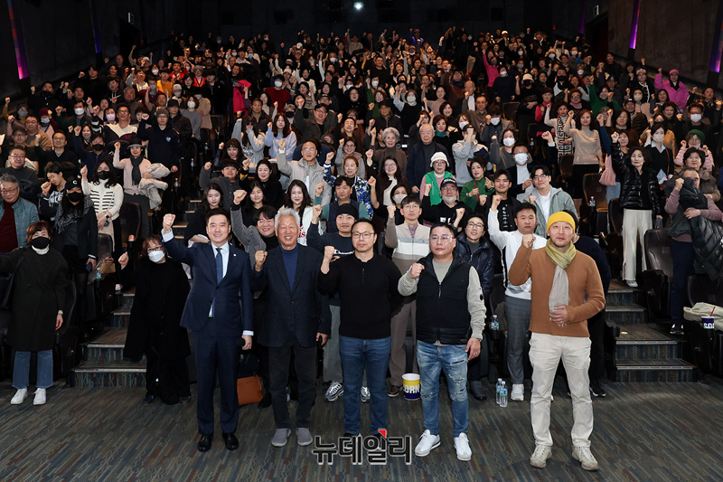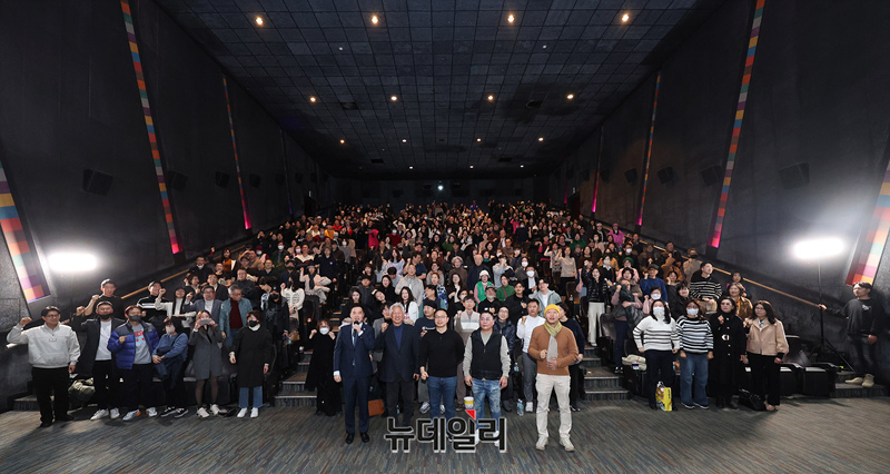유튜브 채널 가로세로연구소와 시민단체 자유대한호국단이 18일 오후 서울 강남구 메가박스 코엑스에서 영화 '건국전쟁(감독 김덕영)' 단체관람 행사에서 기념촬영을 하고 있다.이날 행사에는 류석춘 전 연세대 교수, 김세의 가세연 대표, 김은구 트루스포럼 대표, 오상종 자유대한호국단장, 황경구 대한민국애국순찰팀 단장 등이 참석해 관람에 앞서 인사말을 했다.이승만 건국대통령과 건국 1세대들의 희생과 투쟁을 조명한 다큐멘터리 영화 '건국전쟁'은 누적관객수 626,763명(2월 17일 기준)을 기록하며 흥행하고 있다.