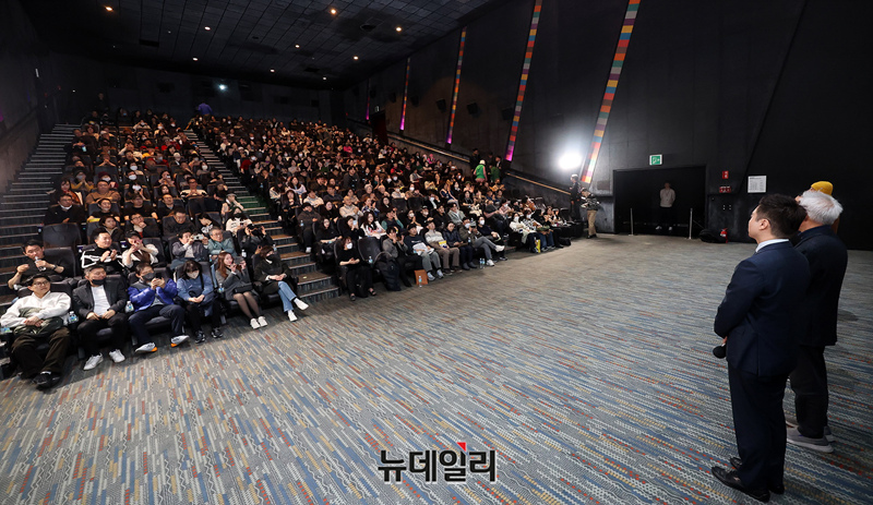 김세의 가로세로연구소 대표가 18일 오후 서울 강남구 메가박스 코엑스에서 가로세로연구소와 자유대한호국단이 주최한 영화 '건국전쟁(감독 김덕영)' 단체관람 행사에서 관람전 인사말을 하고 있다.이날 행사에는 류석춘 전 연세대 교수, 김세의 가세연 대표, 김은구 트루스포럼 대표, 오상종 자유대한호국단장, 황경구 대한민국애국순찰팀 단장 등이 참석했다.이승만 건국대통령과 건국 1세대들의 희생과 투쟁을 조명한 다큐멘터리 영화 '건국전쟁'은 누적관객수 626,763명(2월 17일 기준)을 기록하며 흥행하고 있다.