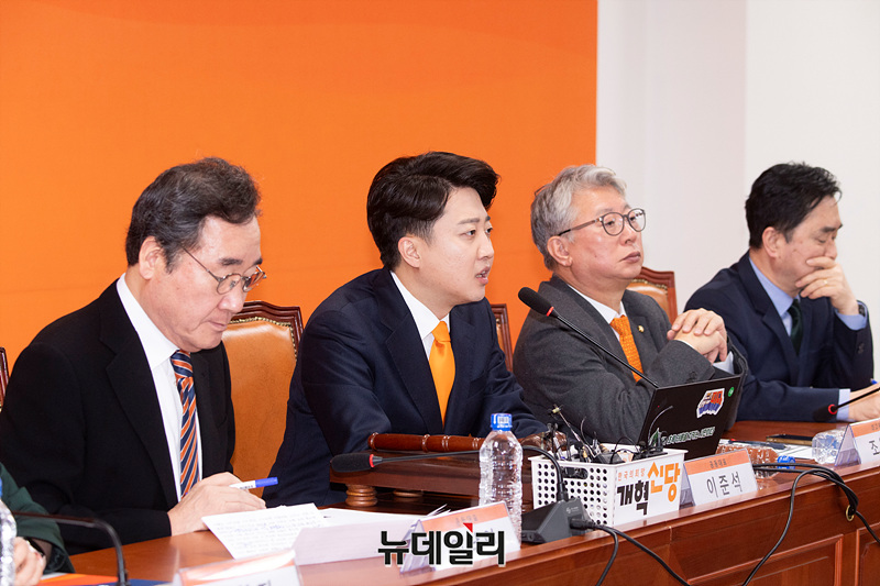 이준석 개혁신당 공동대표가 19일 오전 국회에서 열린 최고위원회의에서 모두발언을 하고 있다.