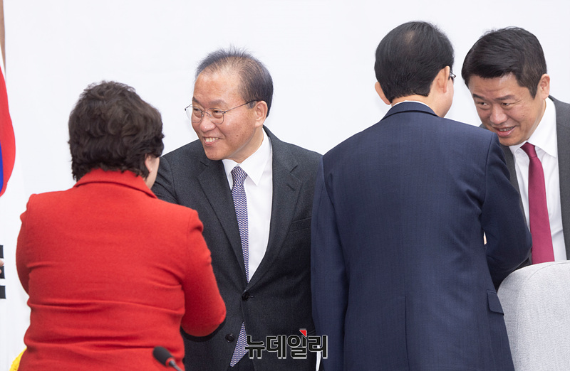 [포토] 국민의힘 원내대책회의 참석하는 윤재옥·유의동
