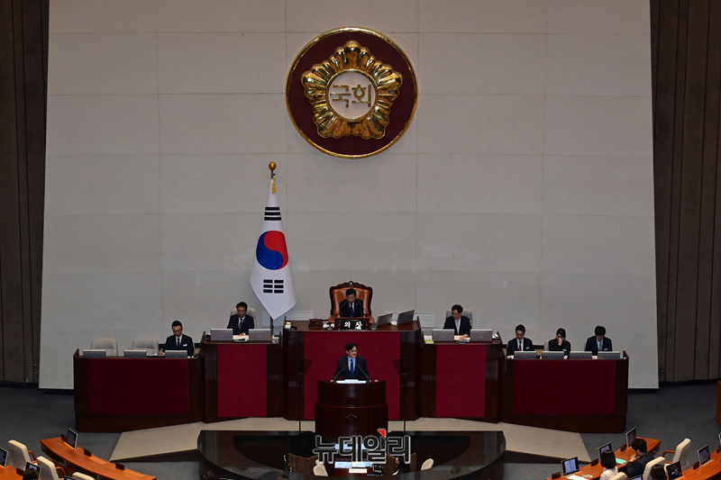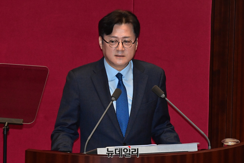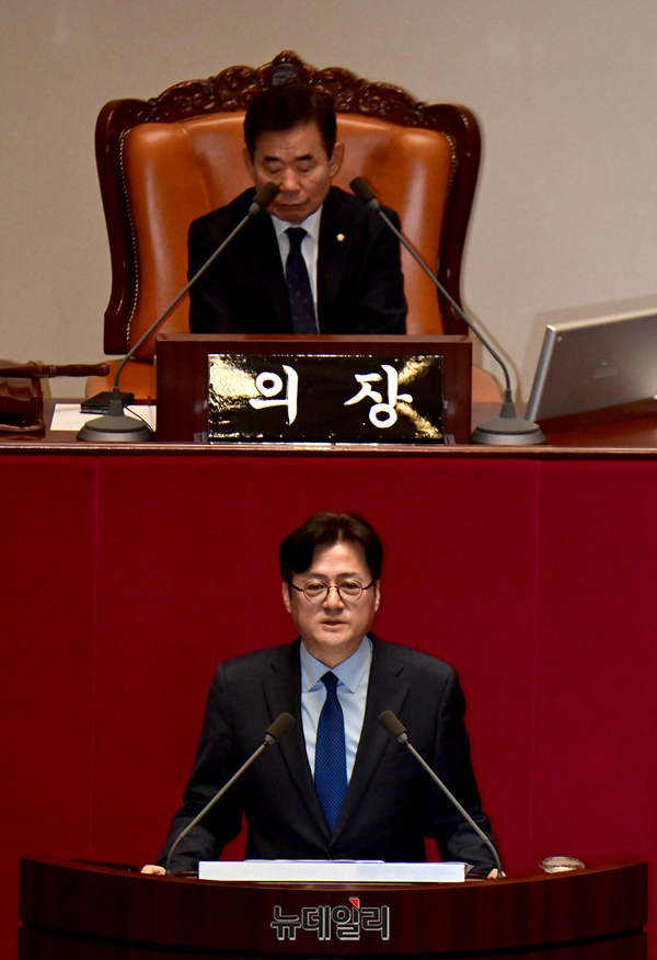 홍익표 더불어민주당 원내대표가 20일 오전 국회에서 열린 본회의에서 교섭단체 대표연설을 하고 있다.