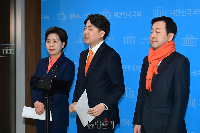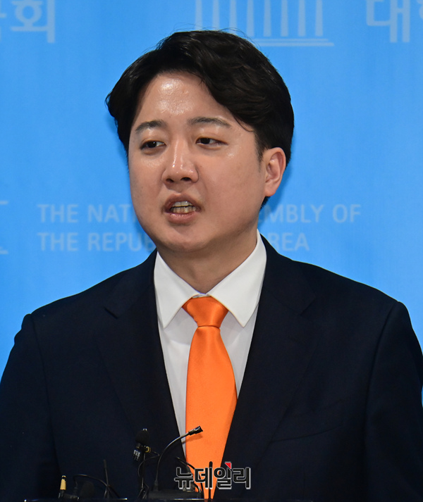 이준석 개혁신당 공동대표가 20일 오후 국회 소통관에서 정부가 양육비를 최대 100만원 선지급하고 해당 비용을 국세청이 원천징수하는 양육비 국가 보증제를 골자로 하는 총선 공약을 발표를 마치고 기자들의 질문에 답하고 있다.