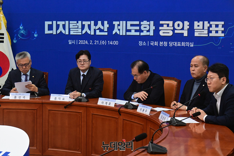 더불어민주당 디지털자산 제도화 공약 발표 간담회가 21일 국회에서 열리고 있다.