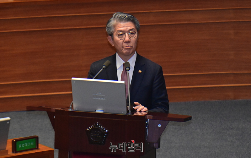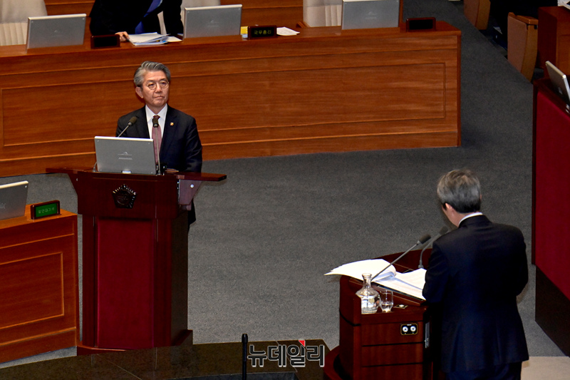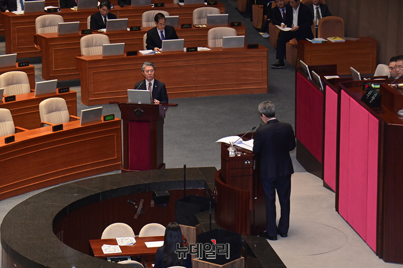 김홍균 외교부 1차관이 22일 국회 본회의 정치·외교·통일·안보·교육·사회·문화에 관한 대정부질문에서 의원의들의 질문에 답하고 있다.