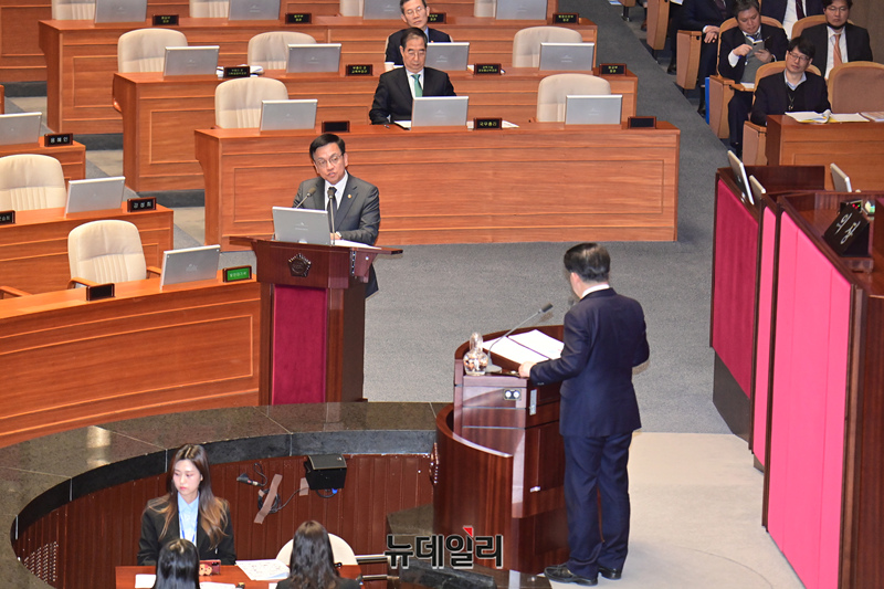 최상목 경제부총리 겸 기획재정부 장관이 23일 오후 국회에서 열린 본회의 경제 분야 대정부질문에 참석해 의원들의 질문에 답하고 있다.