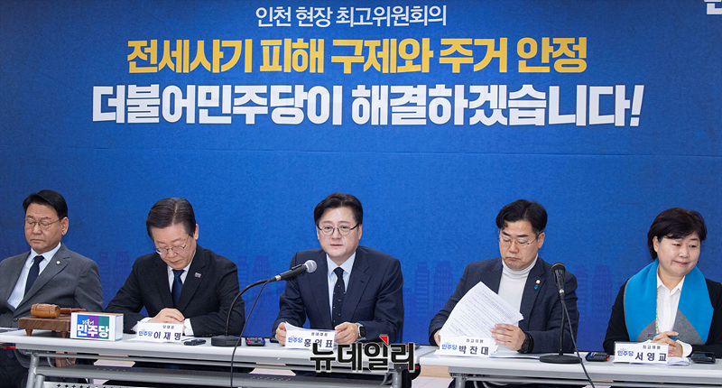 홍익표 더불어민주당 원내대표가 26일 오전 인천시당에서 열린 현장 최고위원회의에서 모두발언을 하고 있다. (인천=서성진 기자)