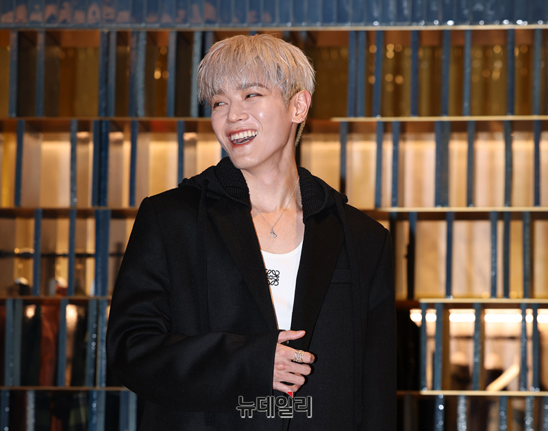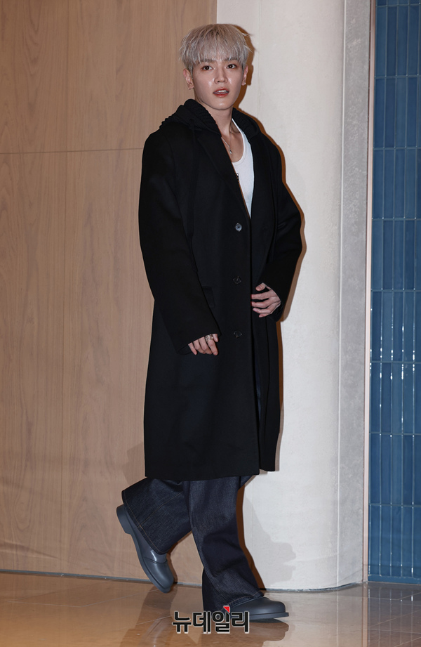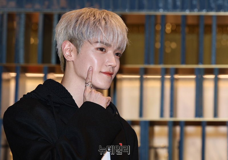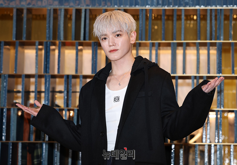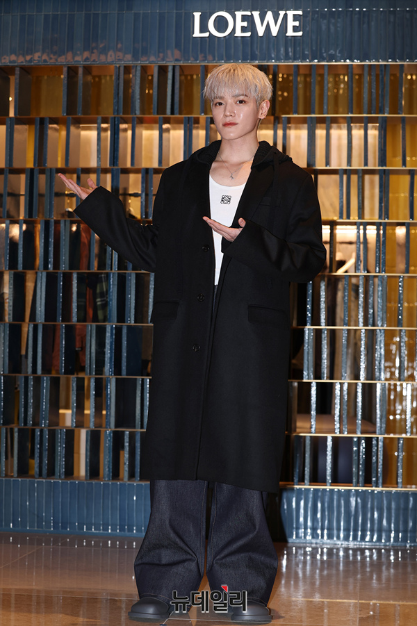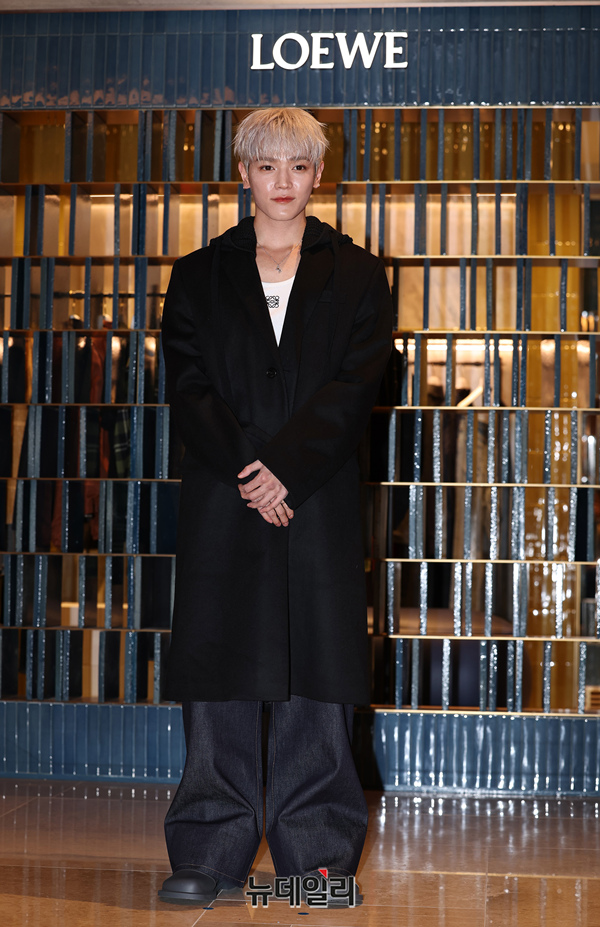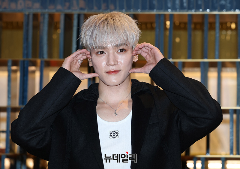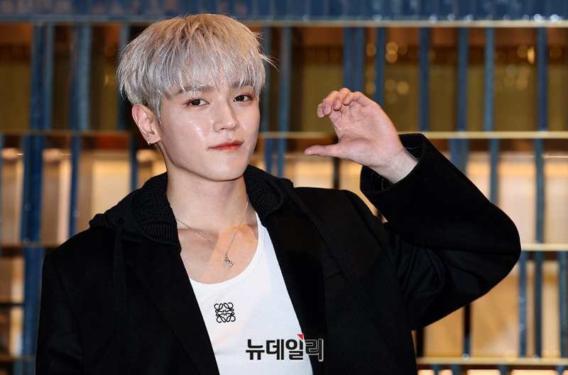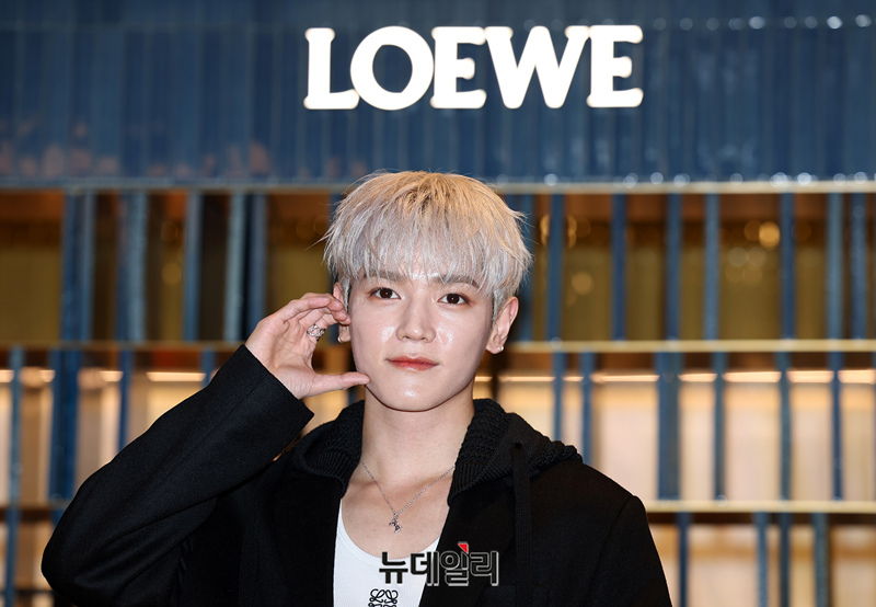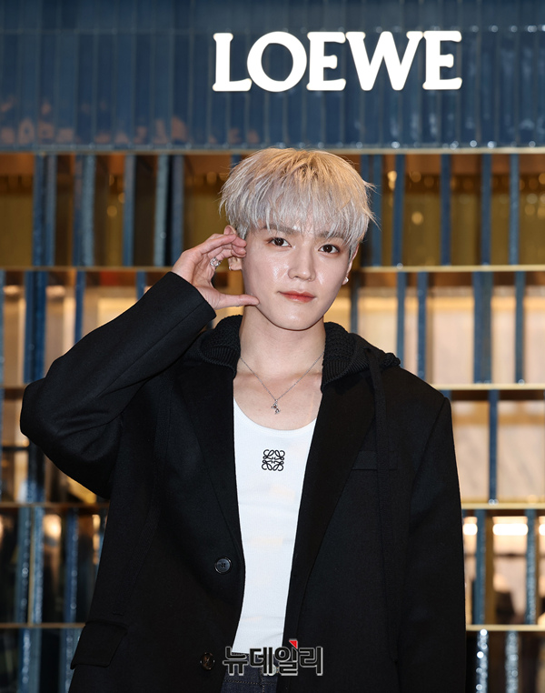 NCT 태용이 26일 오후 서울 신세계백화점 강남점에 오픈한 스페일 럭셔리 패션 하우스 로에베 남성 스토어 오픈행사에서 포즈를 취하고 있다.