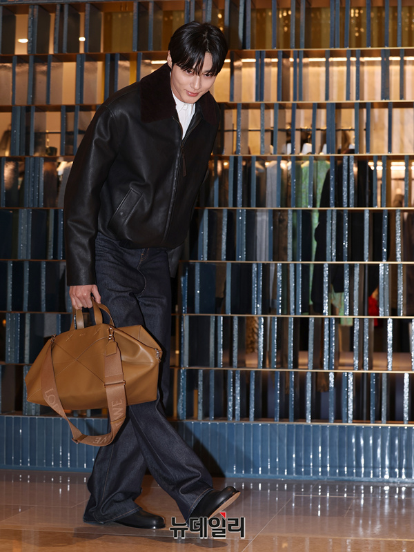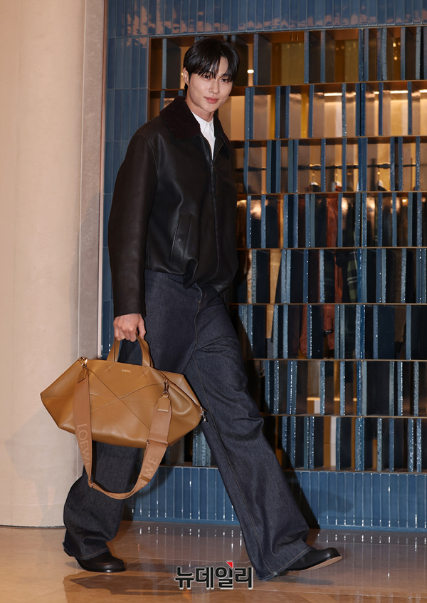 배우 변우석이 26일 오후 서울 신세계백화점 강남점에 오픈한 스페일 럭셔리 패션 하우스 로에베 남성 스토어 오픈행사에서 포즈를 취하고 있다.
