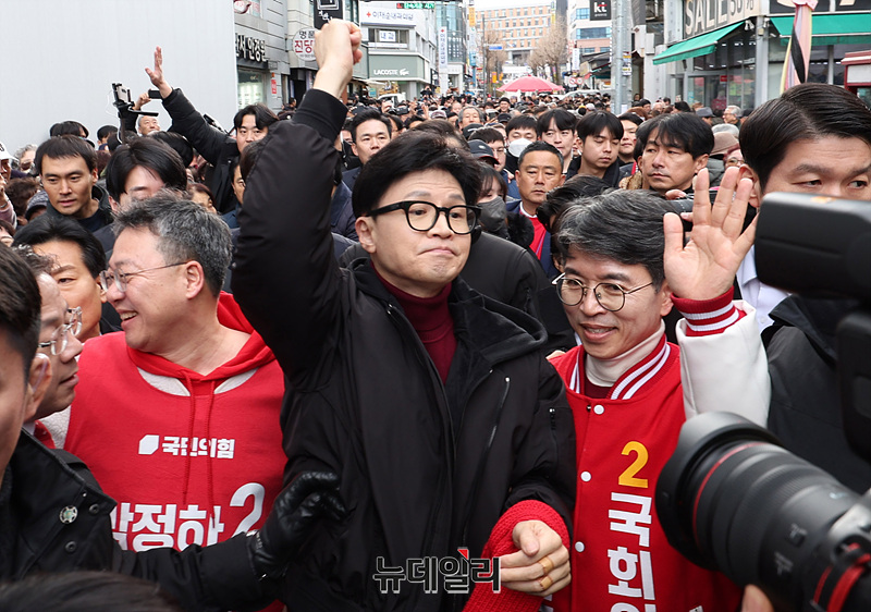 [포토] 지지자에 환영받는 한동훈 위원장