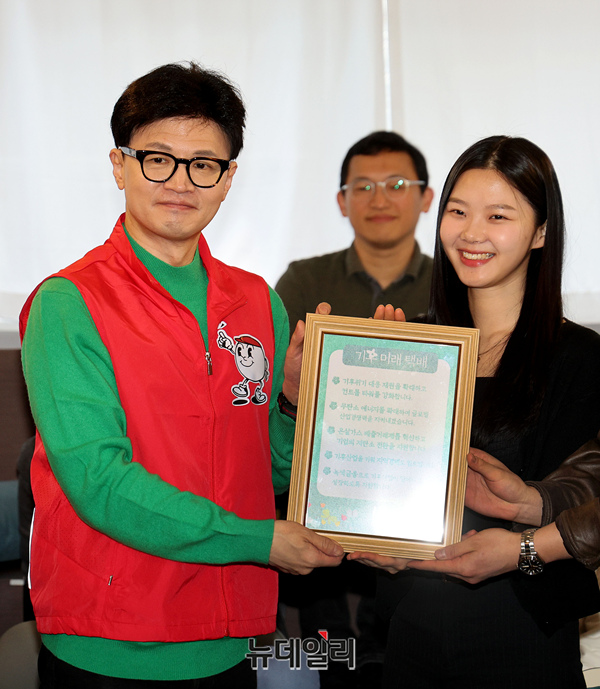 [포토] 한동훈 비대위원장, 기후미래 택배 전달