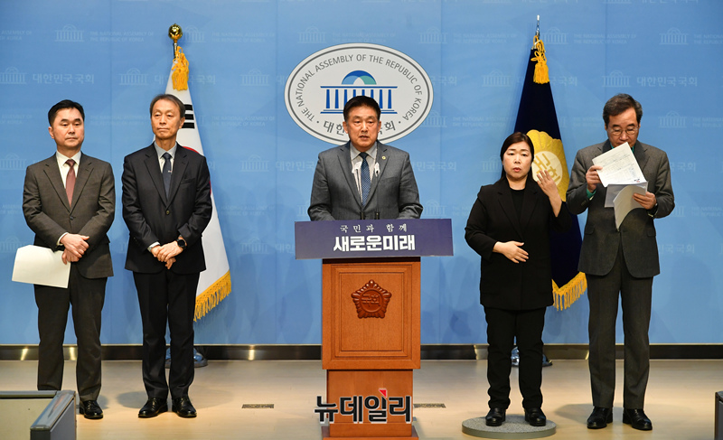이낙연·김종민 새로운미래 공동대표가 27일 오전 국회 소통관에서 조종묵 초대 소방청장, 김성용 방재문화진흥원장을 12, 13번째 인재로 영입을 발표하고 있다.