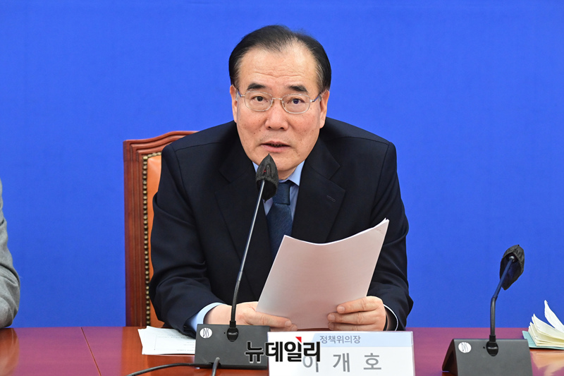 이개호 더불어민주당 전책위의장이 27일 국회에서 열린 고금리부담완화 3종세트 공약발표에서 발언을 하고 있다.