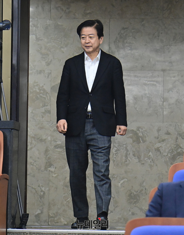 노웅래 더불어민주당 의원이 27일 오후 국회에서 열린 의원총회에 참석하고 있다.