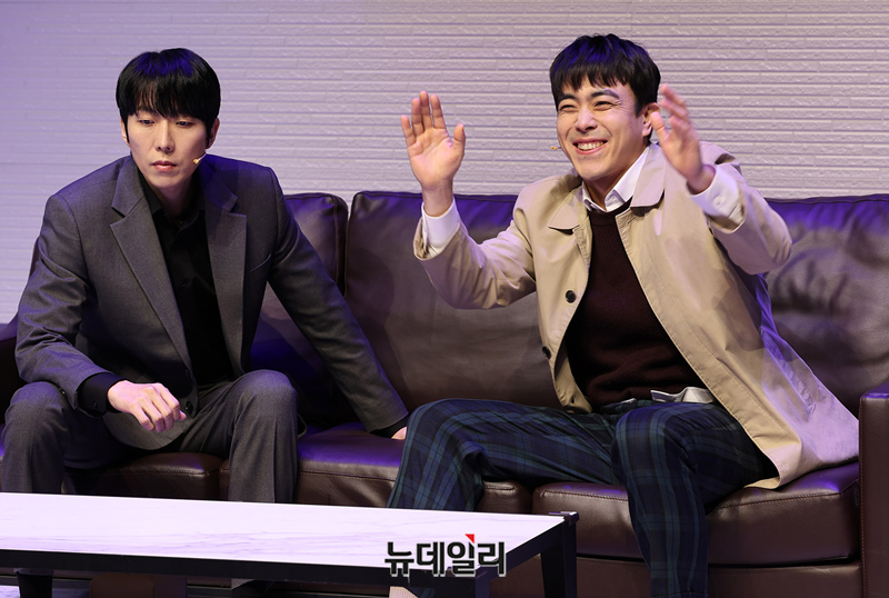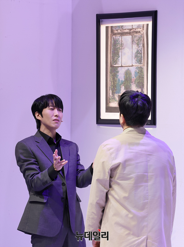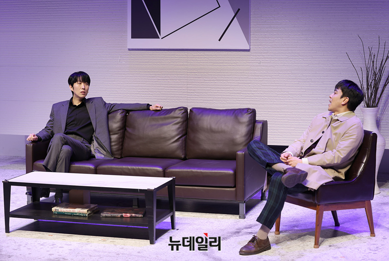 배우 김재범, 박정복이 27일 오후 서울 종로구 링크아트센터 벅스홀에서 열린 연극 '아트(ART)' 프레스콜에서 하이라이트 장면을 시연하고 있다.연극 '아트'는 프랑스 극작가 야스미나 레자의 대표작으로 마크, 세르주, 이반 세 남자의 이야기를 그린다. 거액의 그림을 둘러싸고 오랜 시간 이어진 남자들의 우정이 허영과 오만에 의해 얼마나 쉽게 무너지는지 일상의 대화를 통해 보여준다.배우 성훈, 박은석, 이경욱, 최재웅, 김재범, 이필모, 엄기준 등이 출연해 5월 12일까지 링크아트센터 벅스홀에서 공연된다.