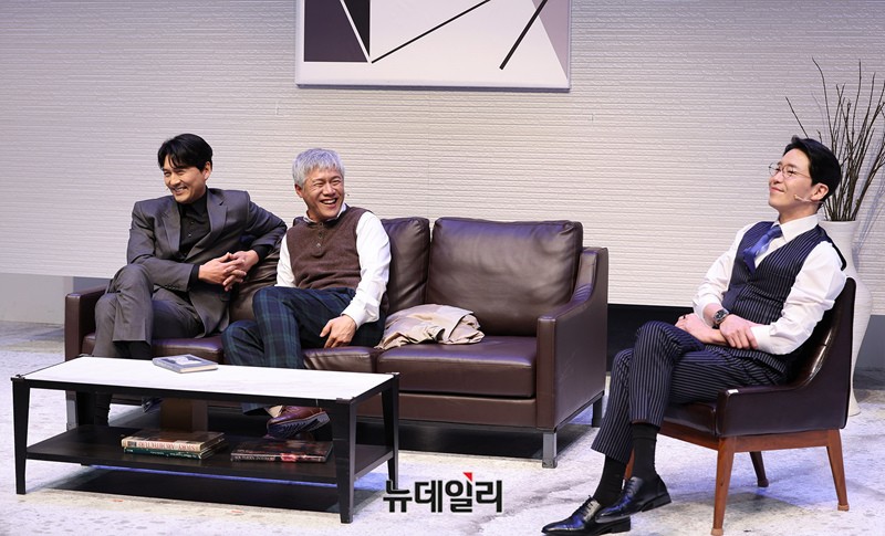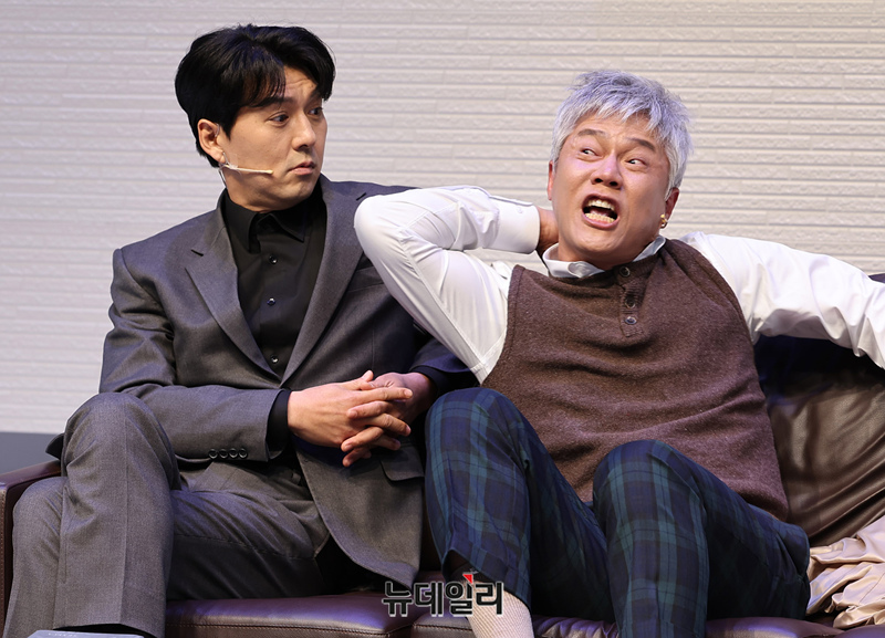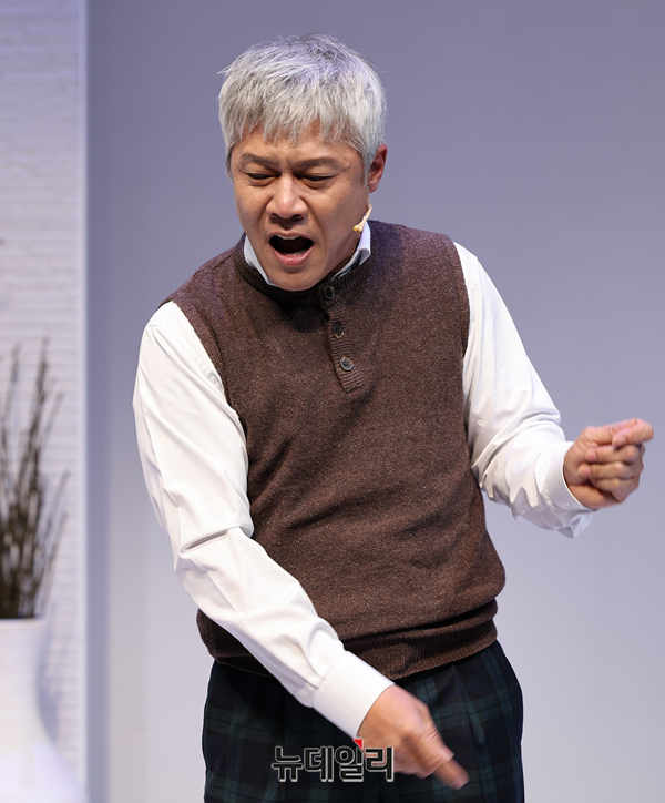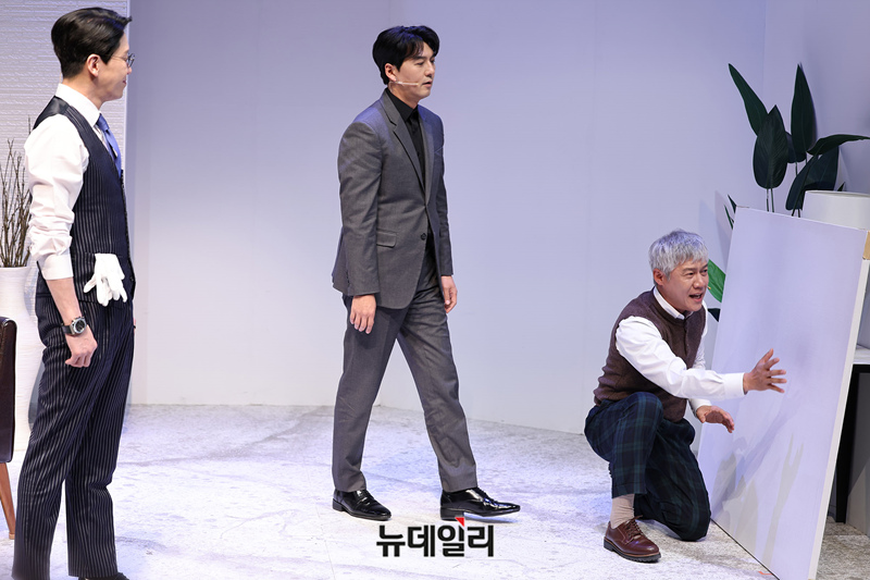 배우 박호산이 27일 오후 서울 종로구 링크아트센터 벅스홀에서 열린 연극 '아트(ART)' 프레스콜에서 하이라이트 장면을 시연하고 있다.연극 '아트'는 프랑스 극작가 야스미나 레자의 대표작으로 마크, 세르주, 이반 세 남자의 이야기를 그린다. 거액의 그림을 둘러싸고 오랜 시간 이어진 남자들의 우정이 허영과 오만에 의해 얼마나 쉽게 무너지는지 일상의 대화를 통해 보여준다.배우 성훈, 박은석, 이경욱, 최재웅, 김재범, 이필모, 엄기준 등이 출연해 5월 12일까지 링크아트센터 벅스홀에서 공연된다.