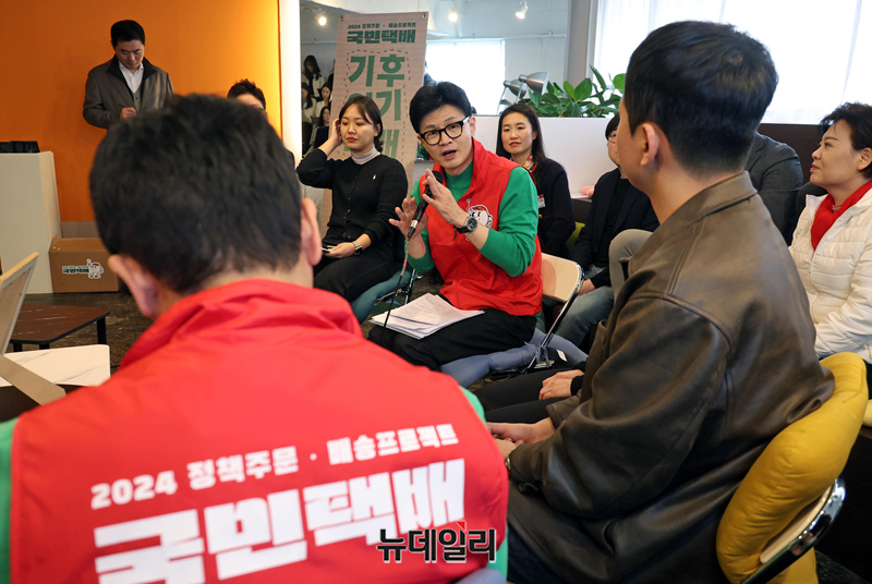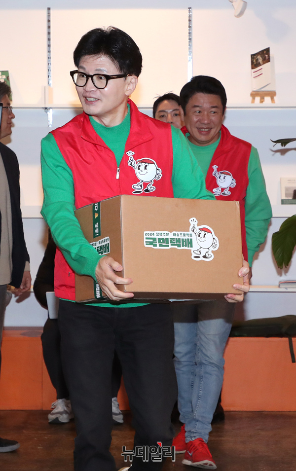 [포토] 기후미래 택배 든 한동훈 위원장