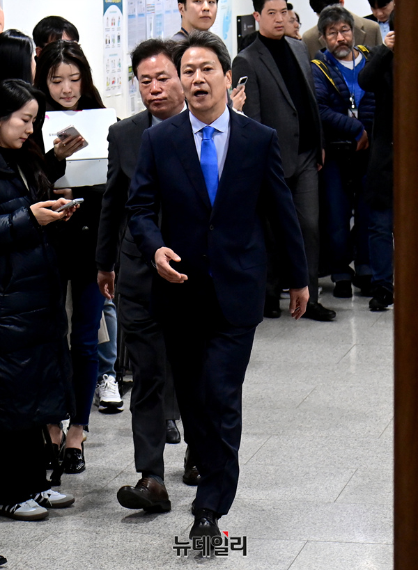 임종석 전 대통령비서실장이 28일 오전 국회 소통관에서 공천 관련 기자회견을 위해 입장하고 있다.