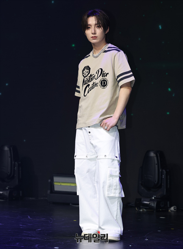 아이돌그룹 노매드(NOMAD) 리버가 28일 오전 서울 강남구 성암아트홀에서 열린 데뷔 쇼케이스에서 포즈를 취하고 있다.
