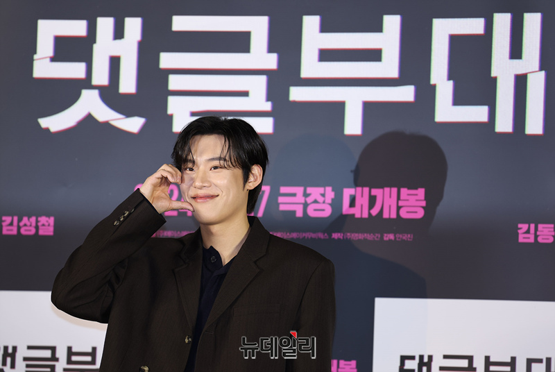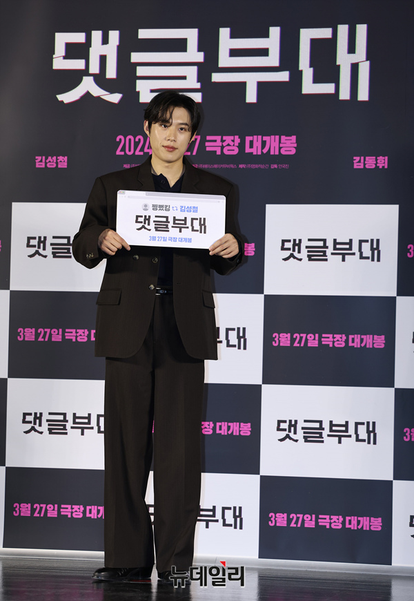배우 김성철이 4일 오전 서울 광진구 롯데시네마 건대입구에서 열린 영화 '댓글부대(연출 안국진)' 제작보고회에서 포토타임을 갖고 있다.