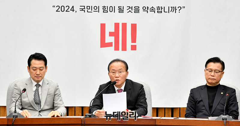 윤재옥 국민의힘 원내대표가 5일 오전 국회에서 열린 원내대책회의에서 모두발언을 하고 있다.