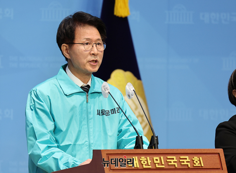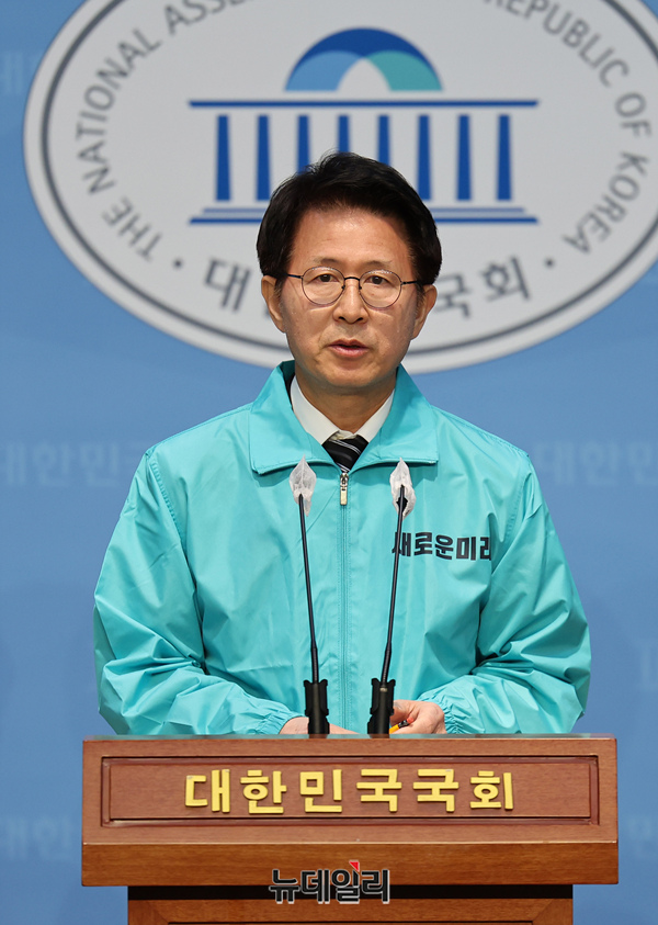 김만흠 새로운미래 정책위의장이 5일 오전 국회 기자회견장에서 새로운미래 정치개혁 공약을 발표하고 있다.