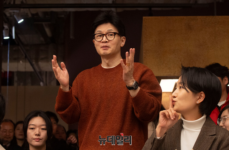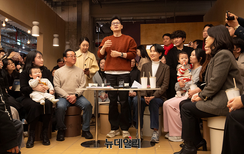한동훈 국민의힘 비상대책위원장이 5일 오후 충북 청주시 문화제조창에서 열린 육아맘들과 간담회에서 인사말을 하고 있다. (충북 청주=서성진 기자)