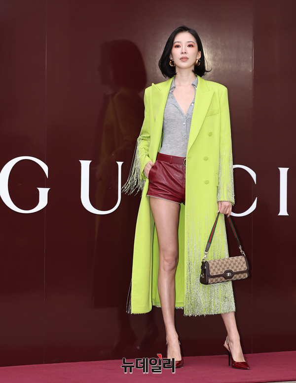 모델 아이린이 5일 오후 서울 강남구 갤러리아백화점 명품관에서 열린 구찌 '앙코라(Gucci Ancora)' 팝업스토어 오픈 행사에서 포즈를 취하고 있다.