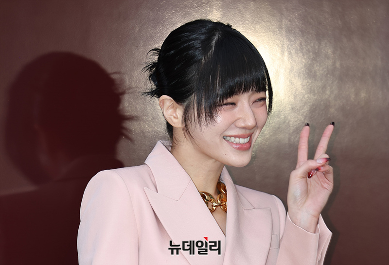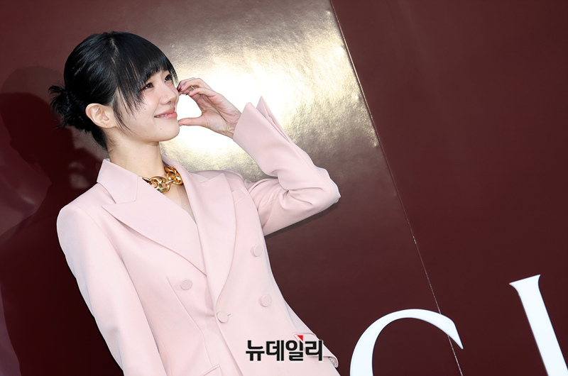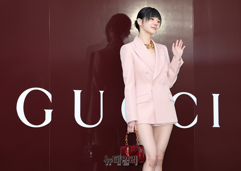 배우 박규영이 5일 오후 서울 강남구 갤러리아백화점 명품관에서 열린 구찌 '앙코라(Gucci Ancora)' 팝업스토어 오픈 행사에서 포즈를 취하고 있다.