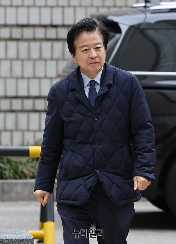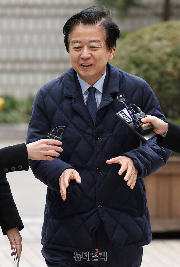 수천만원대 뇌물과 불법 정치자금을 받은 혐의로 재판에 넘겨진 노웅래 더불어민주당 의원이 6일 오전 서울중앙지법에서 열린 1심 속행공판에 출석하고 있다.
