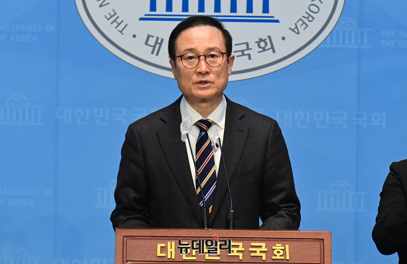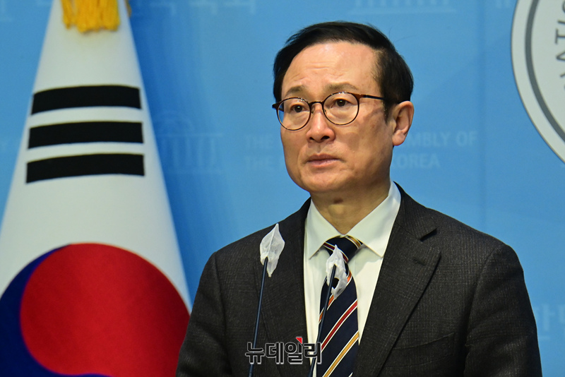 홍영표 더불어민주당 의원이 6일 오전 국회 소통관에서 탈당 기자회견을 하고 있다.