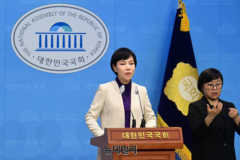전현희 전 국민권익위원장이 6일 오전 국회 소통관에서 총선 서울 중구성동구갑 출마선언 기자회견을 하고 있다.