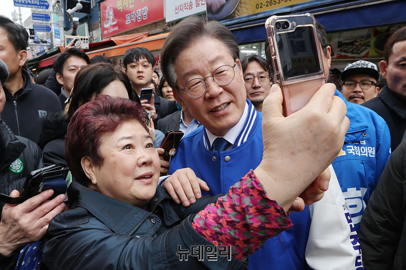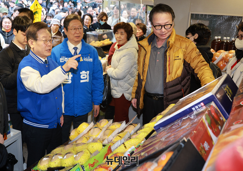 [포토] 목동깨비시장서 시민들 만나는 이재명-황희