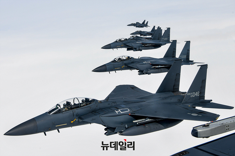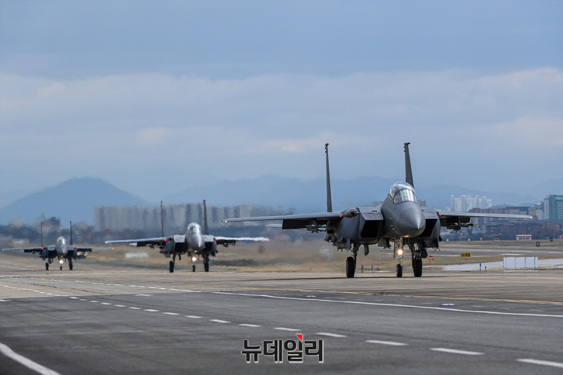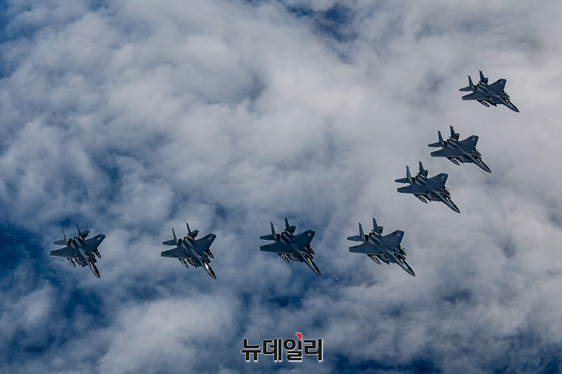 우리공군 제11전투비행단이 6일 '24 자유의 방패(FS·Freedom Shield)' 연습과 연계해 2차 비수(PISU) 훈련을 진행하고 있다. 조종사들은 가상 적군의 순항미사일을 식별·요격하고 F-15K 전투기를 출격시켜 적 고속기에 대응하고, 미상항적 탐지가 제한되는 상황에 대한 대응방법도 훈련했다. (사진=공군)