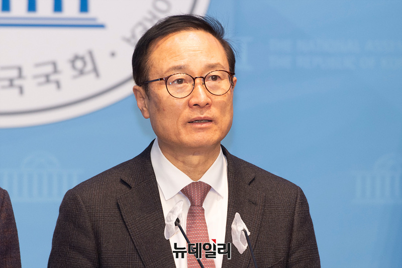 더불어민주당을 탈당한 박영순, 설훈, 홍영표 의원과 김종민 새로운미래 공동대표가 7일 오전 국회 소통관에서 민주연대 추진 기자회견을 하고 있다.