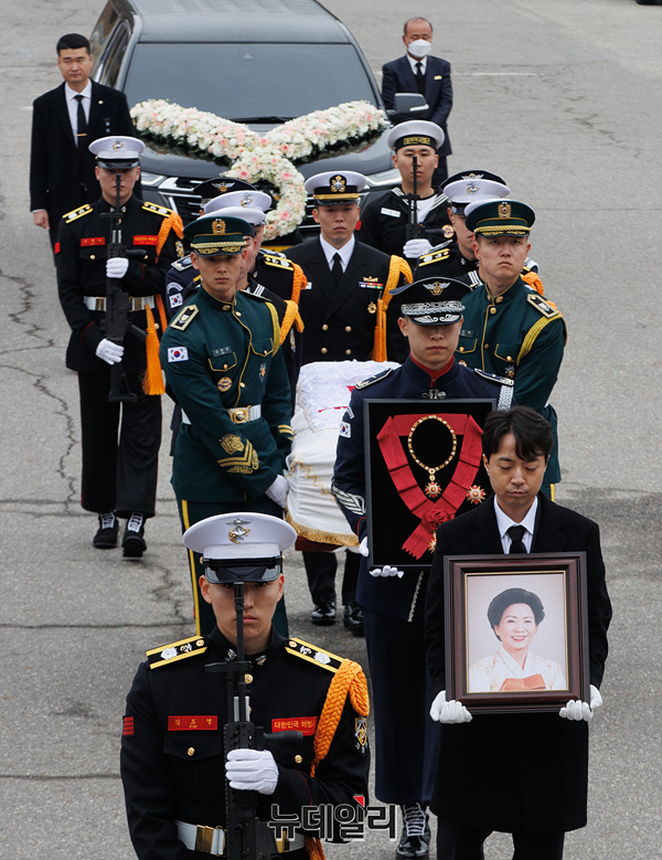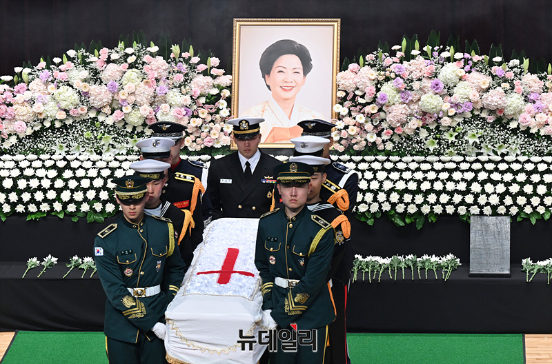 고 김영삼 전대통령 부인 손명순 여사의 영결식이 11일 오전 서울 동작구 국립서울현충원 현충관에서 엄수되고 있다.