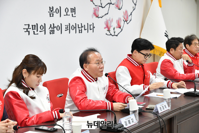 윤재옥 국민의힘 원내대표가 11일 오전 서울 영등포구 여의도 중앙당사에서 열린 비상대책위원회의에서 모두발언을 하고 있다.