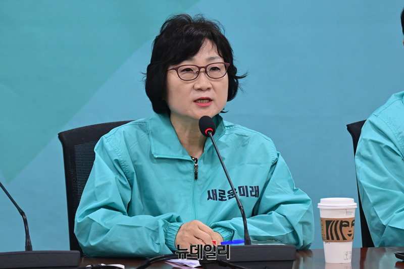조기숙 새로운미래 공관위원장이 11일 오전 국회 의원회관에서 열린 선대위 출범식에서 발언을 하고 있다.