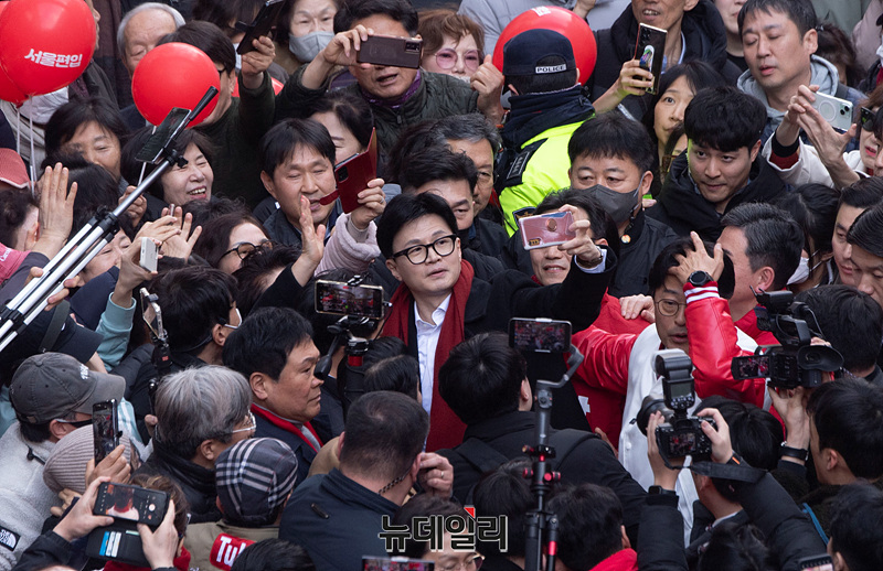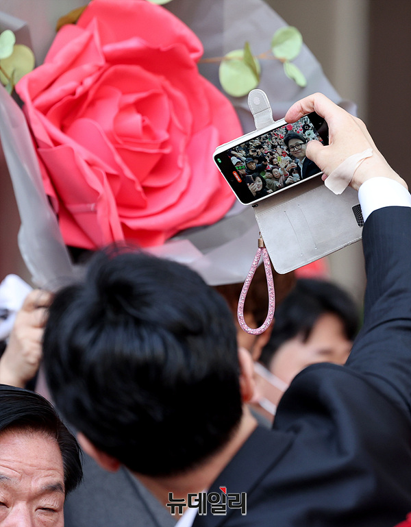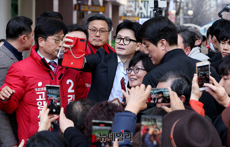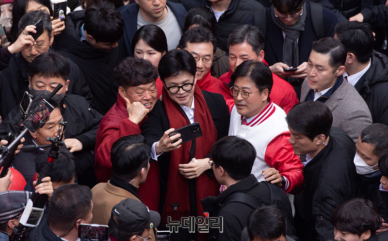 한동훈 국민의힘 비상대책위원장이 11일 오후 경기 고양시 일산 라페스타에 방문해 시민들과 기념촬영하고 있다. (경기 고양=서성진 기자)