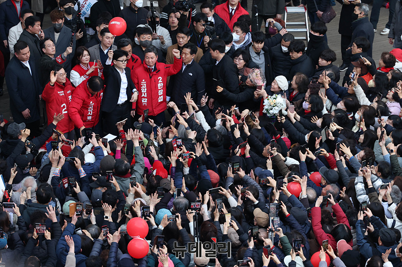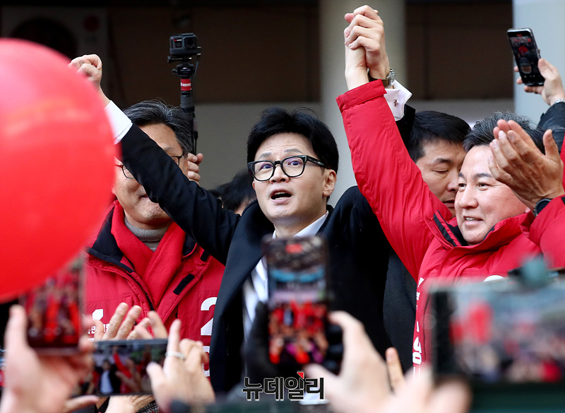 [포토] 한동훈 위원장 손잡은 고양시 예비후보