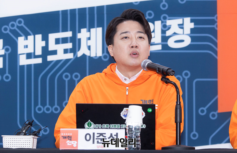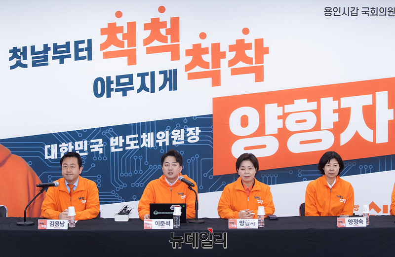 이준석 개혁신당 대표가 13일 오전 경기 용인시 양향자 용인갑 예비후보 선거사무소에서 열린 현장 최고위원회의에서 모두발언을 하고 있다. (경기 용인=서성진 기자)
