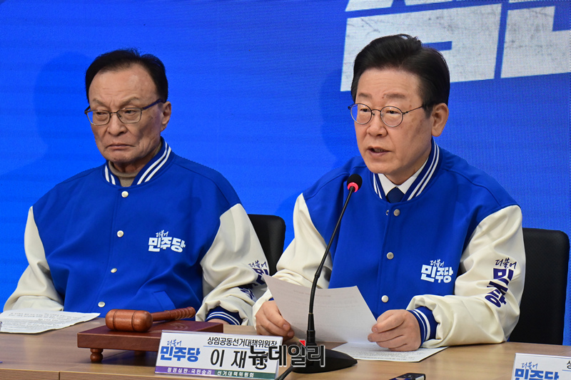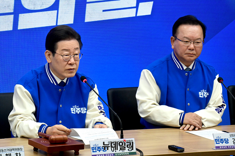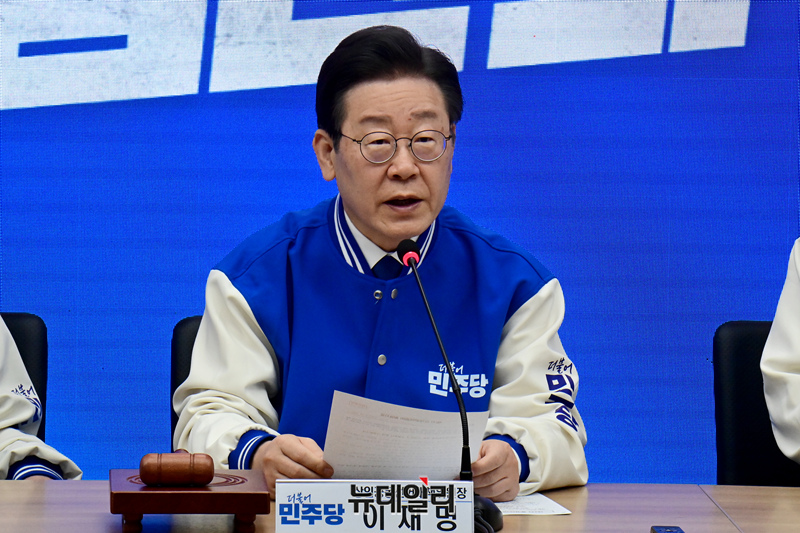이재명 더불어민주당 상임공동선거대책위원장이 13일 오전 서울 영등포구 여의도 중앙당사에서 열린 중앙선거대책회의에 참석해 모두발언을 하고 있다.